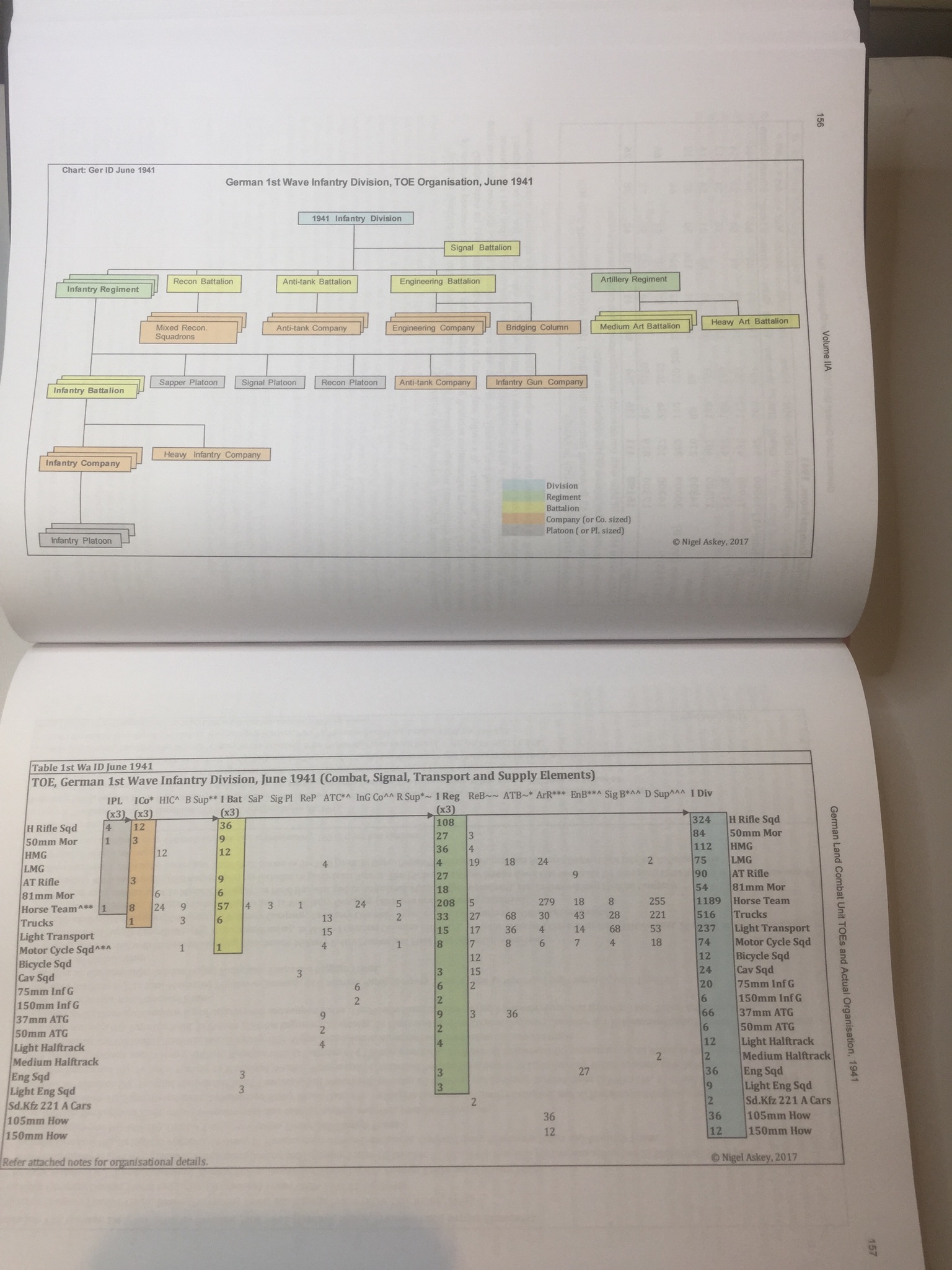 The proof copy for the new Volume IIA hardback and colour edition. This will soon be available at all major book outlets. The colours are not just aesthetic; they are all keyed to represent specific organisations. For example, orange (companies), yellow (battalions), green (regiments), etc. In addition, several errors in the softback versions have now been corrected in the new hardback editions.